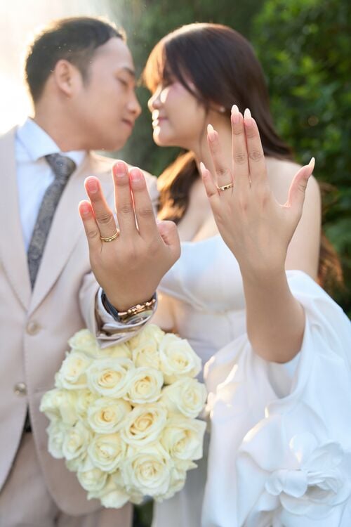 Vừa bất ngờ, vừa xúc động, Linh đưa tay cho Vũ đeo nhẫn. Thế là chấp nhận lời cầu hôn.
